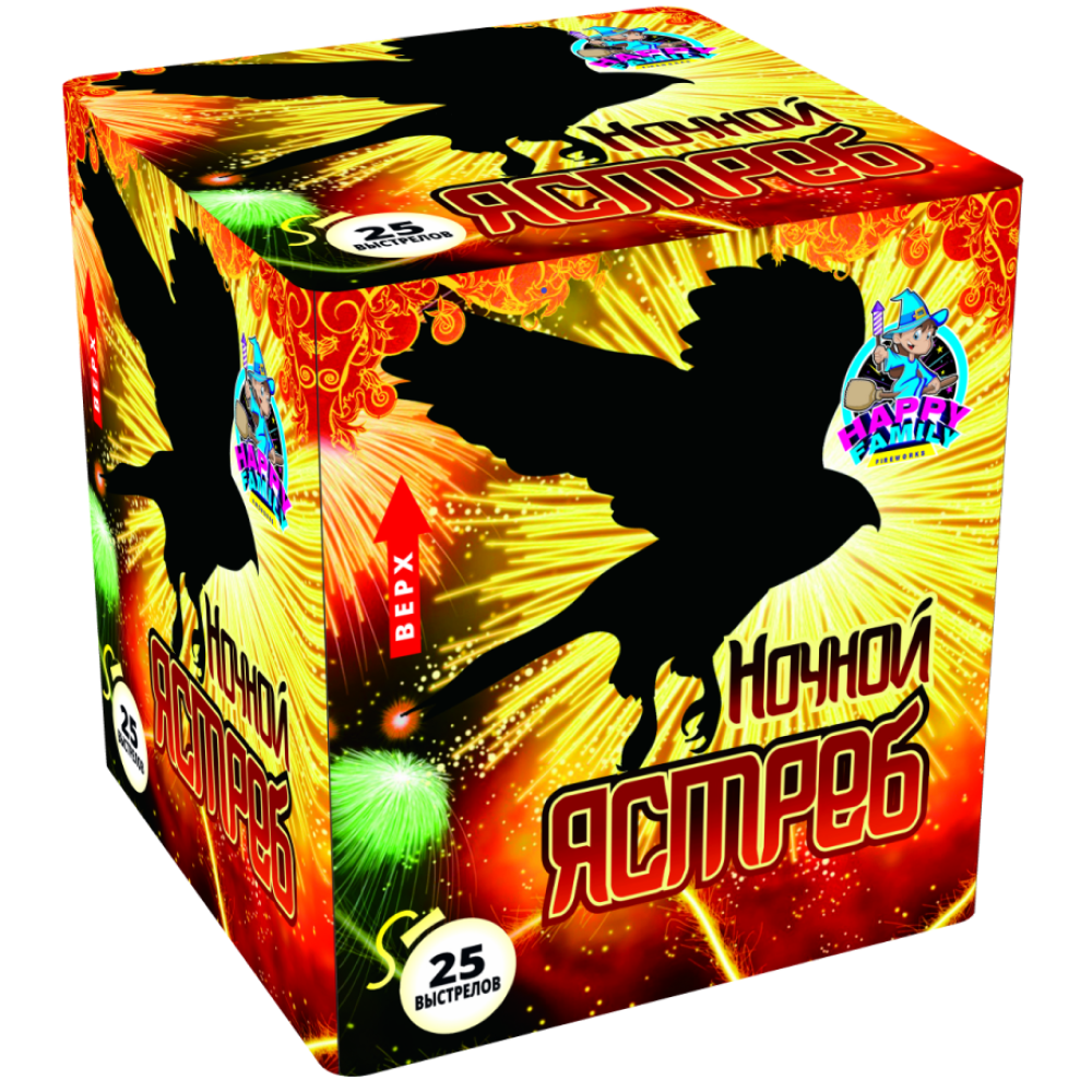 Название салюта: Ночной ястреб (FP-B363) Артикул: FP-B363 Производитель: Китай Калибр: 38 калибр Зарядов: 25 залпов Длительность: 45 секунды