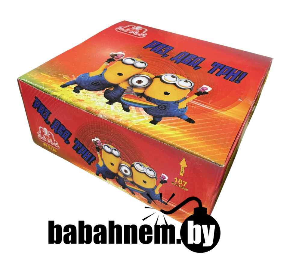 Раз, два, три! (FPB126) – батарея внушительных размеров, которые точно не разочаруют вас и свои содержимым. Батарея салютов порадует даже самого притязательного зрителя, благодаря своим красивым и ярким цветам, а также уникальной композиции из десятков цветов. В наборе сосредоточено 107 снарядов 20-го калибра, которые будут взрываться в ночном небе на протяжении невероятных 53 секунд. Больше минуты непрерывного удовольствия в ночном небе!