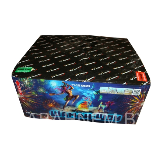 Название салюта: Шаман шоу (TKB969) Артикул: TKB969 Производитель: Китай Калибр: 30 калибр Зарядов: 168 залпов Длительность: 147 секунд