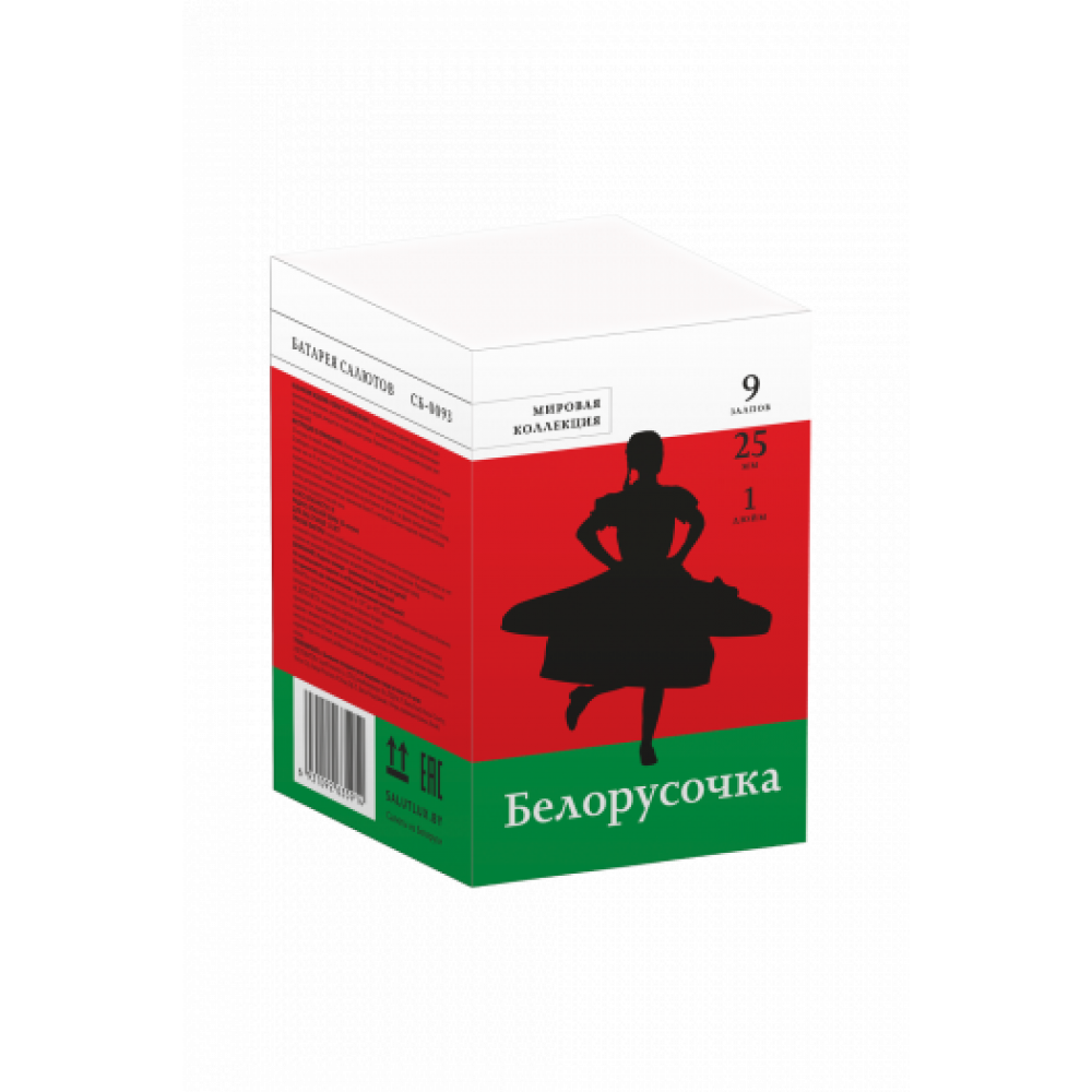 Название салюта: Белорусочка(СБ-0093) Артикул: СБ-0093 Калибр: 25 калибр Зарядов: 9 залпов Длительность: 20 секунд